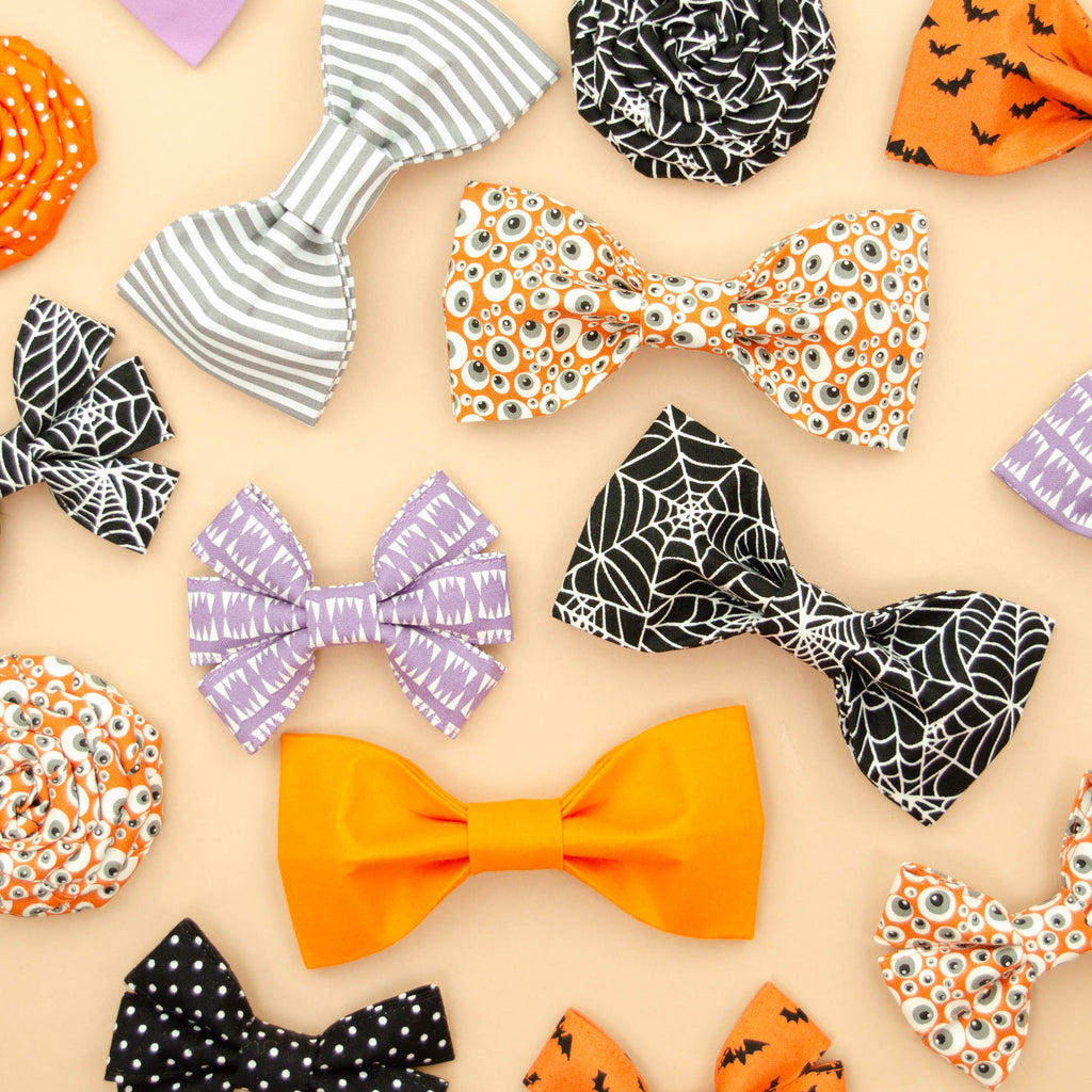 Get into the spooky spirit with the Stein, an eerie orange print scattered with wide-eyed eyeballs that add a quirky, fun touch to your pup's Halloween look.