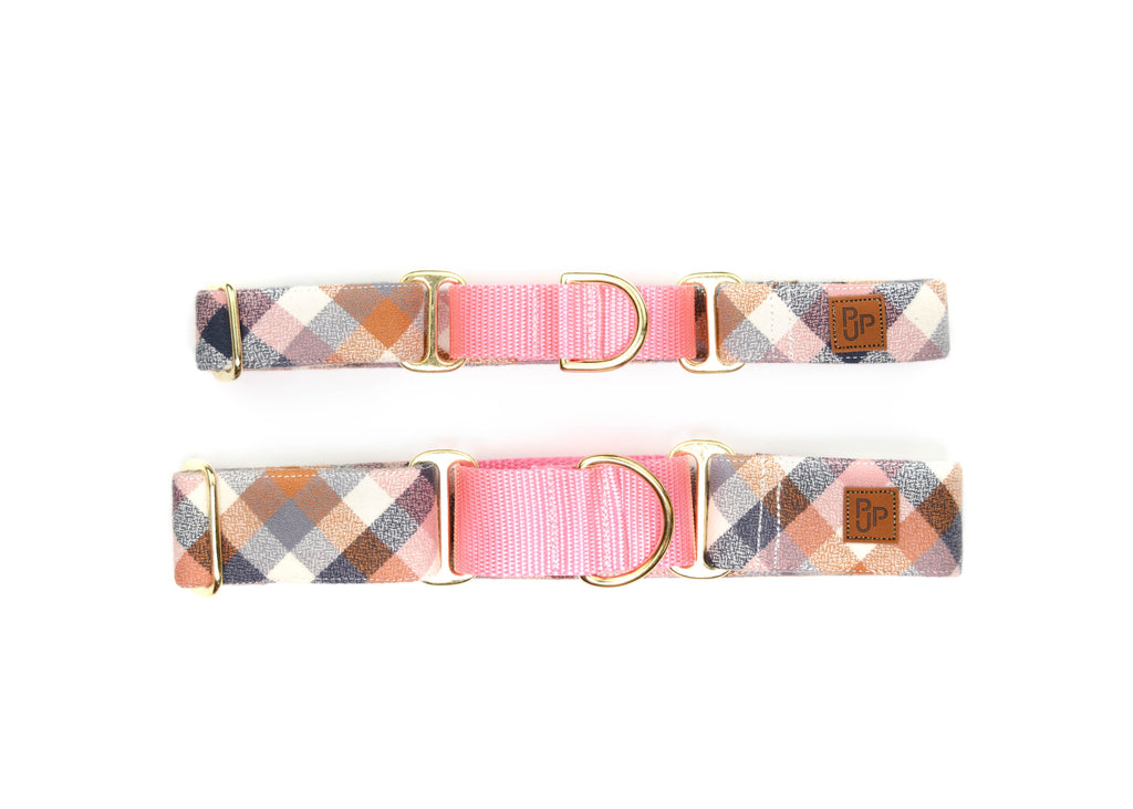 This martingale style combines our Sonoma fabric and Light Pink nylon.