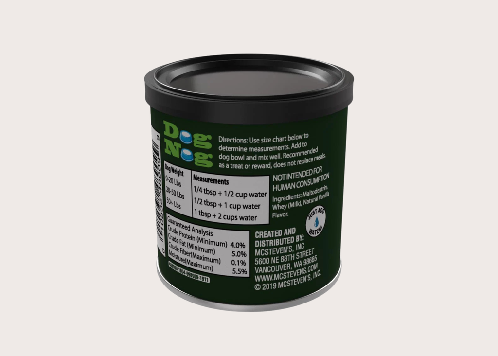 Let your furry friend join in on the holiday cheer with Dog Nog! This simple, tasty treat is a festive favorite that pups absolutely adore. Just add water and watch tails wag with delight. It's the perfect way to spread holiday joy to your four-legged family member. At 3 oz, it's an ideal size for treating your pup to something special this season.